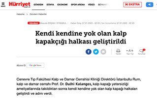 Ord. Prof. Dr. Afksendiyos Kalangos kalp damar cerrahisinde kullanılan, biyolojik olarak parçalanabilen Kalangos Halkası’nın da mucididir. Kalangos halkası, mitral ve triküspit kalp kapakçıklarının dilate anulüsünün cerrahi olarak düzeltilmesini sağlar.1